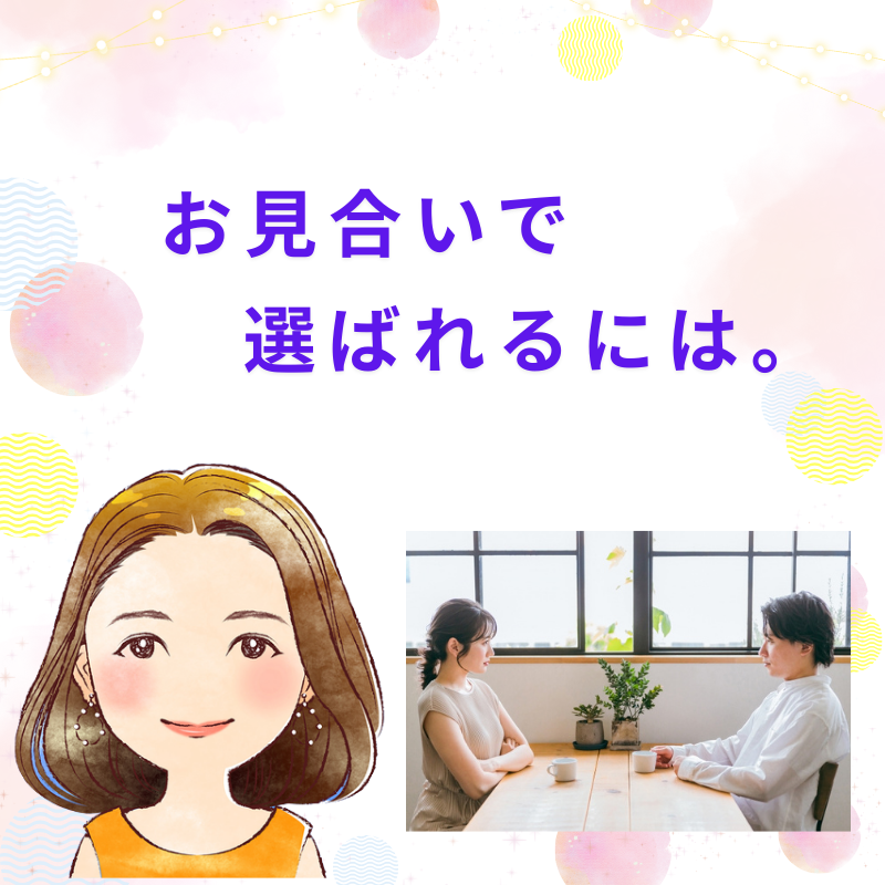 就職面接官のように相手を選ぶという立場ではなく、自分は相手から「選ばれている」という視点を持つこと。そして、相手に時間をつくってもらい、貴重な人生経験談を聞かせてもらっているという謙虚な姿勢で、お見合いに臨むことは大切だと思います。また、自分が完璧な人間ではないように、お相手も完璧な人間ではありません。お相手の「良いところ」に注目し、嫌なところについては受け流す。少々の欠点については目を瞑って、魅力的に感じる点を見つけていくという、心のおおらかさ・余裕も大事だと思います。お見合いほど、異性と出会えるチャンスはなかなか無いものなので、まずはどうか楽しんでくださいね。