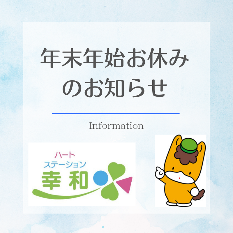 ハートステーション幸和では誠に勝手ながら、年末年始休業日を下記のとおりとさせていただきます。