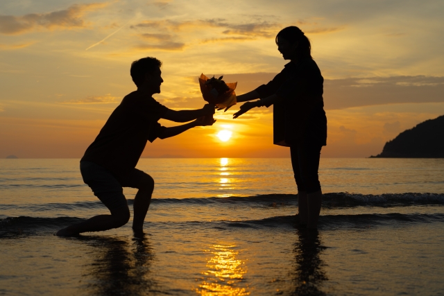 夕日が沈む海辺のプロポーズ💍、何か羨ましいですね。。。😅